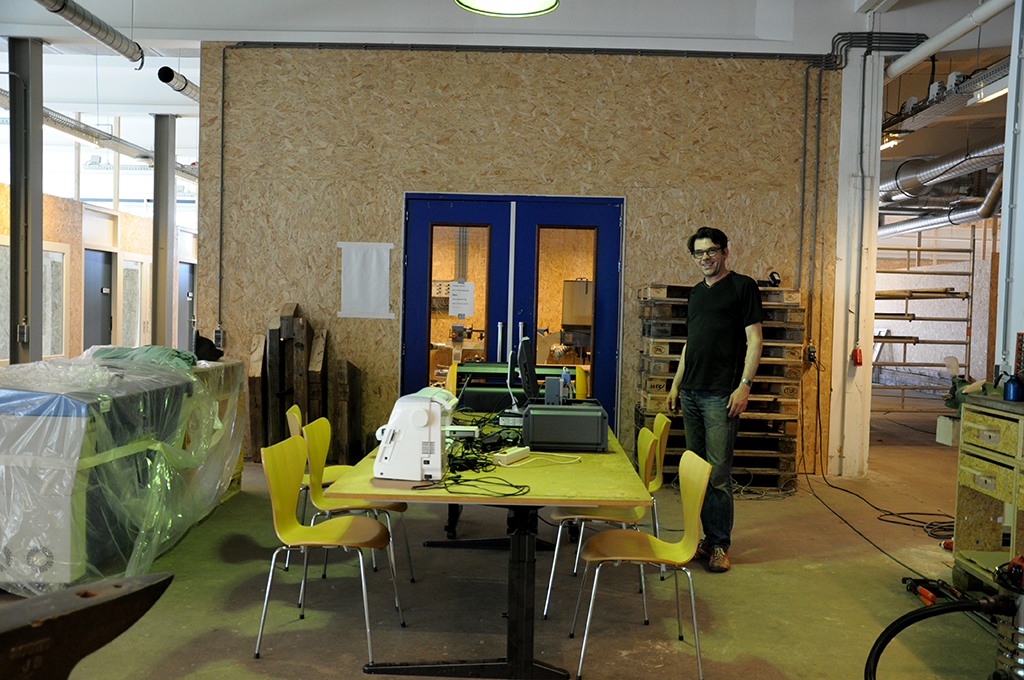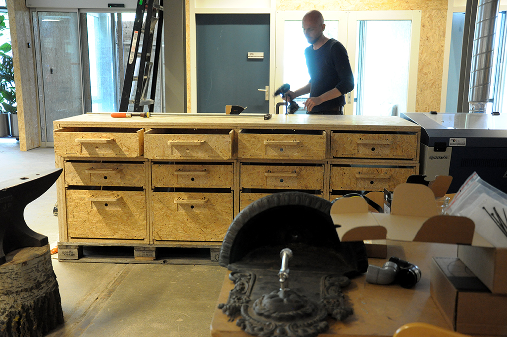 私の恩師 であり、KMSにメイカースピリッツを植えてくれたアレックス・シャウブ氏がダイレクターを務める、アムステルダム西地区に新しくできたメイカースペース&シェアオフィスの設置の手伝いに来ています。(アレックス氏によるKMSのワークショップの様子はこちら、こちらも。)