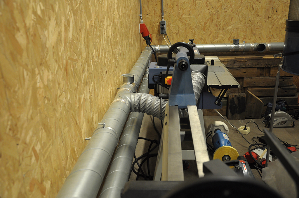 ベルトサンダーなど粉塵の出る作業に合わせて粉塵がオフィスに散らばらないよう、しっかりとケアされています。