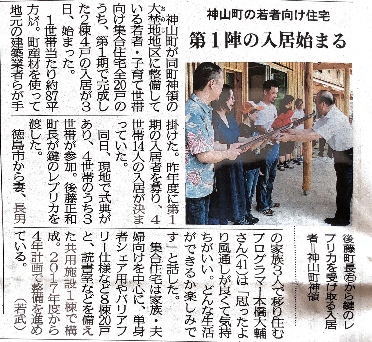 私事なんですがこのたび神山町に引っ越しをしまして、大埜地集合住宅という町営住宅に入居することができました。神山町の木材を使って、神山町の職人が建てるというプロジェクトで、その第一期となります。