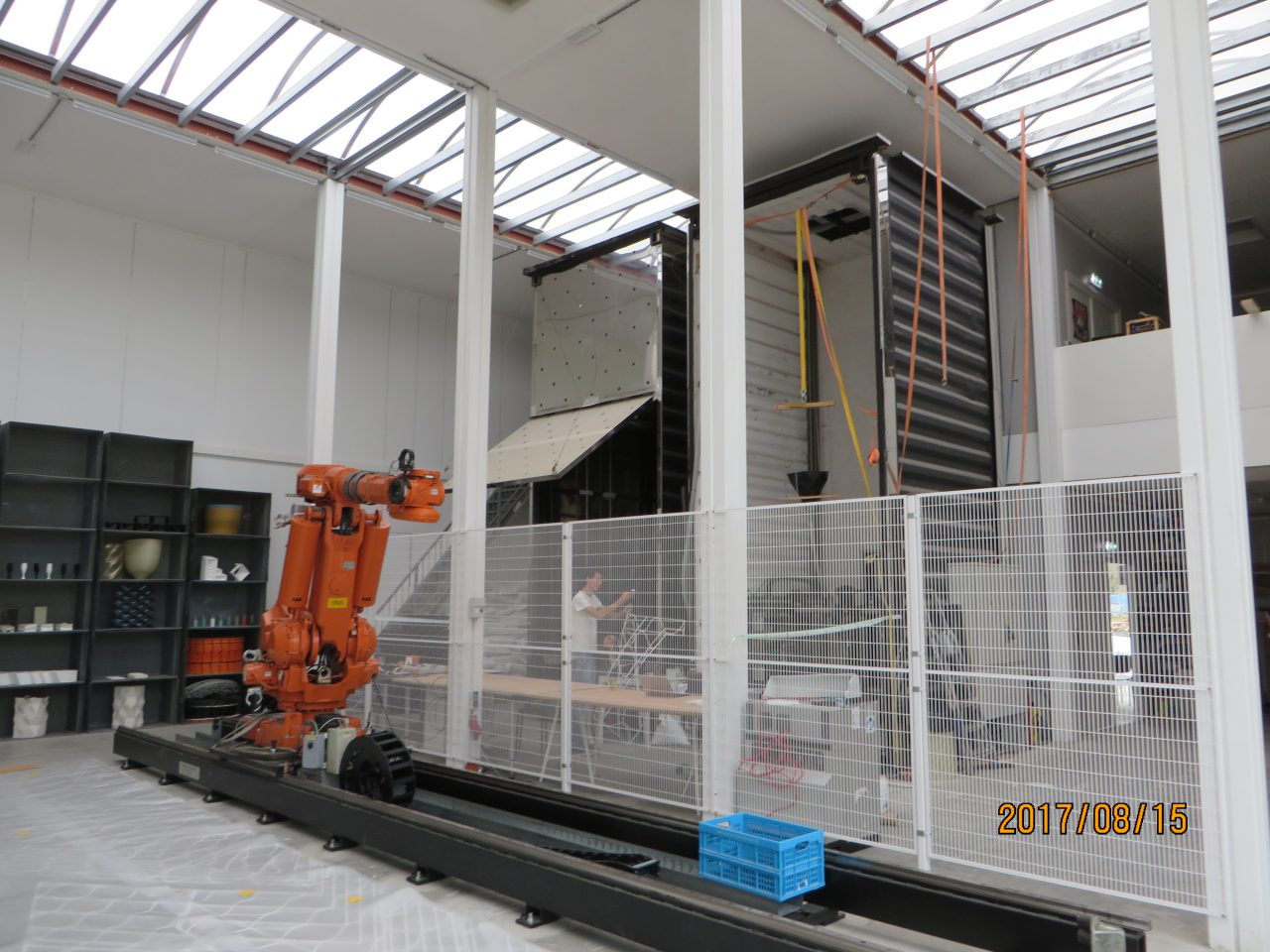 そして、最近購入したというロボットの腕。こちらは3本あるそうで、現在、研究チームがこの3本をいかに自由に動かして自由な形を作れるか、研究中。そう、ここの大きな目標は、様々な制約にとらわれない自由な形の家を作ることだそうです。