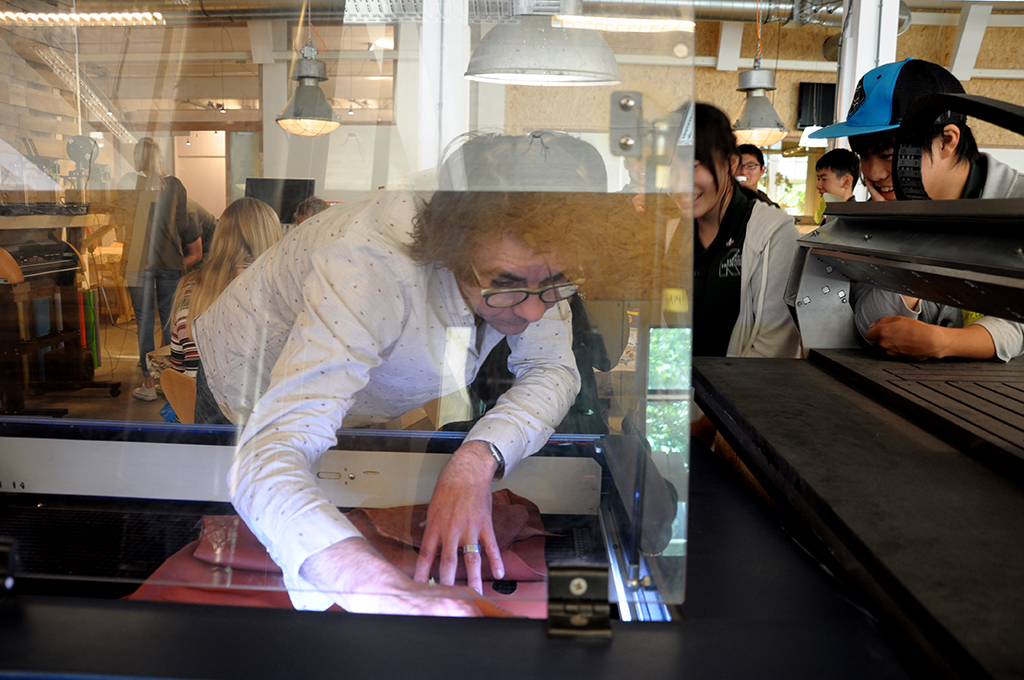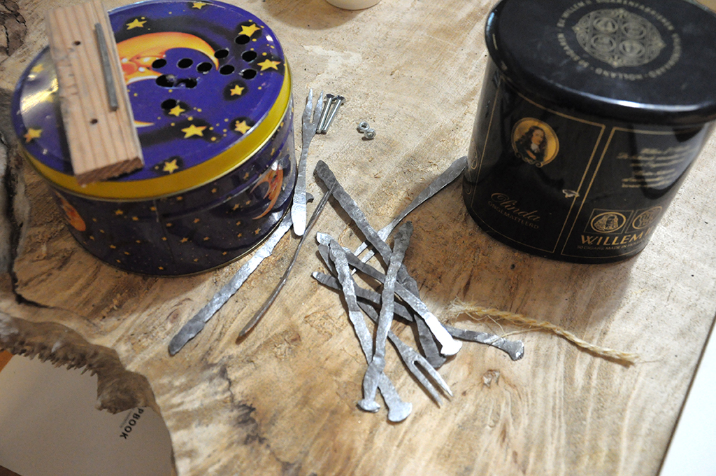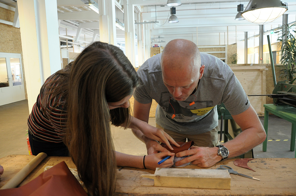 二日目には鹿の革を花形にレーザーカッターで加工し、買ってきた空き缶に取り付けました。これ、なかなか上手くいきました!