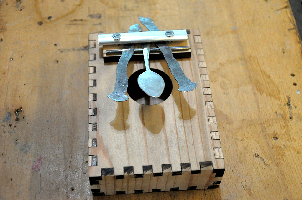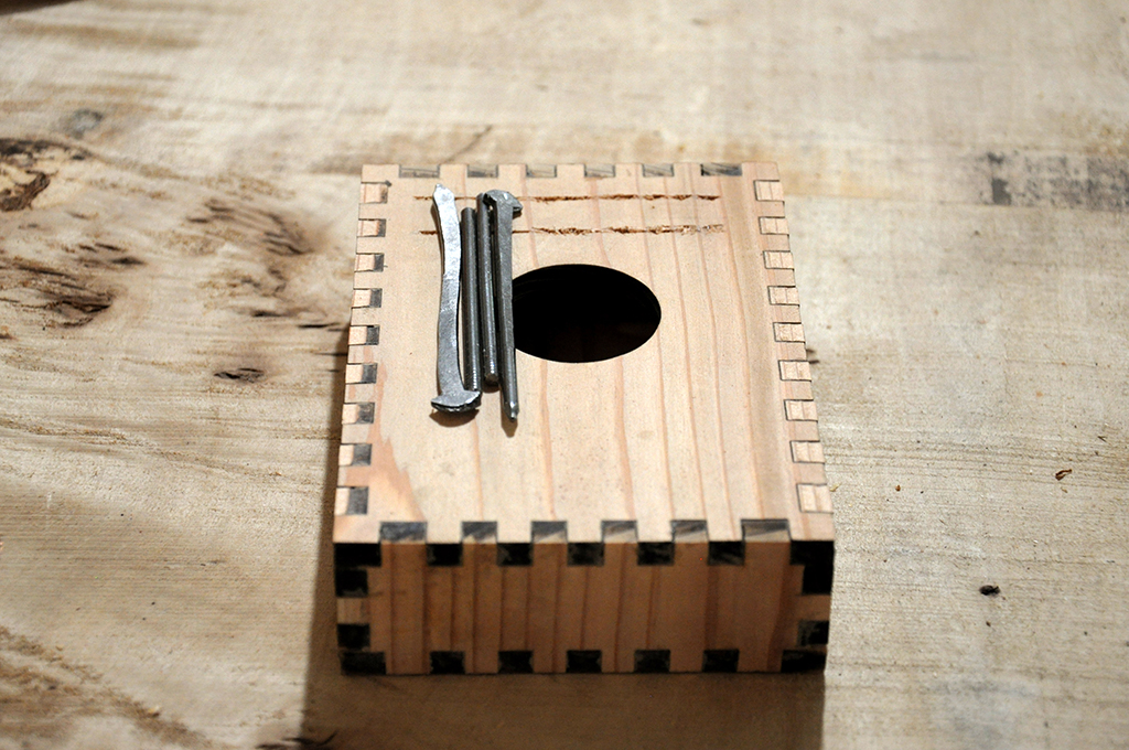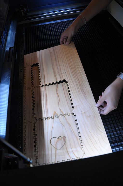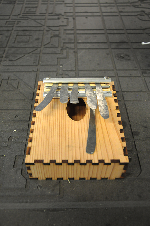 杉板をレーザーカッターで加工し、指先ピアノのボディーになる箱を作りました。