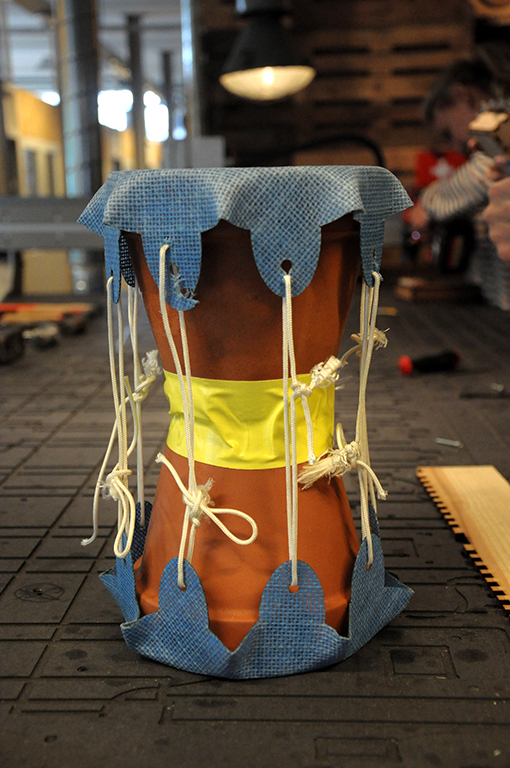 これは植木鉢を二つくっつけた、太鼓。なかなか良い音が出ました。