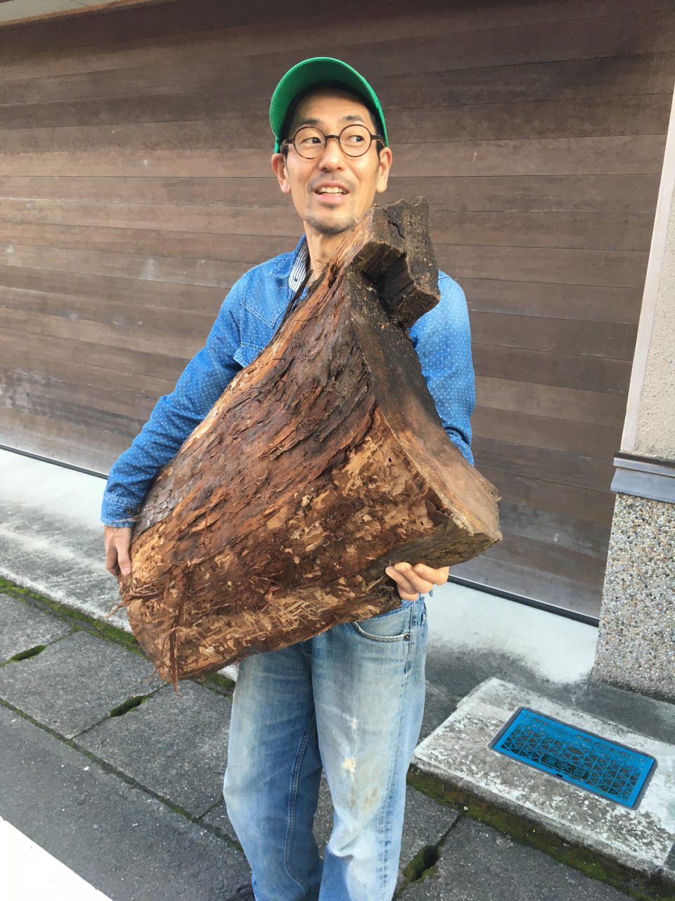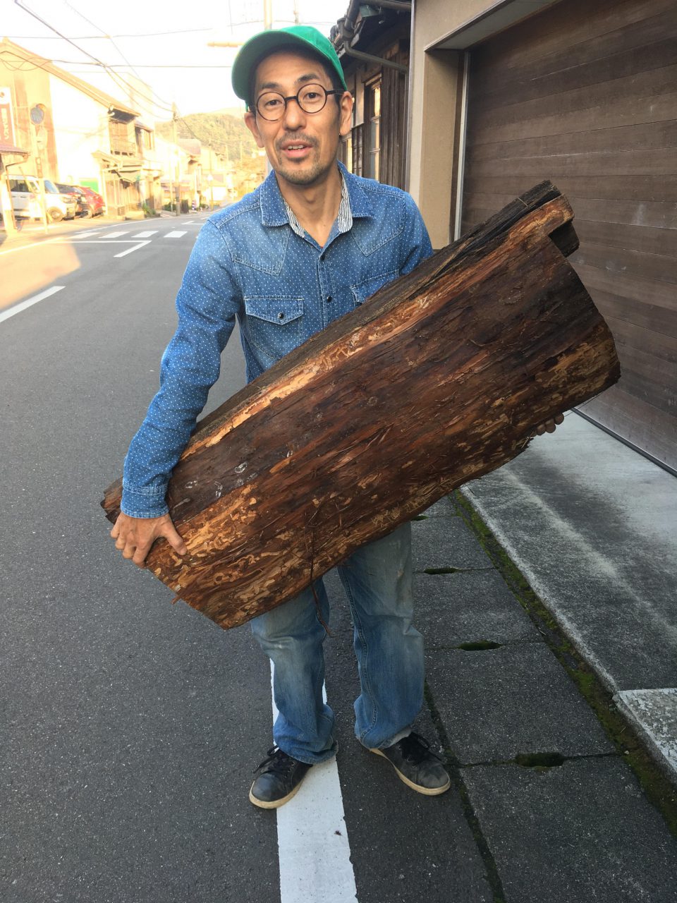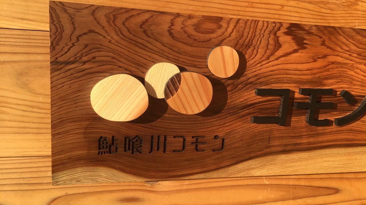 建物の銘看板となると、その場所の顔になる看板です。建築チームからのご相談は、銘木となる地元の1000年杉を鮎喰川コモンが末長く続くように!との願いを込めて看板に活用すること。こちらの杉は2年ほど前の大火事で焼け残ったという、火にも強いという頼もしい味方。