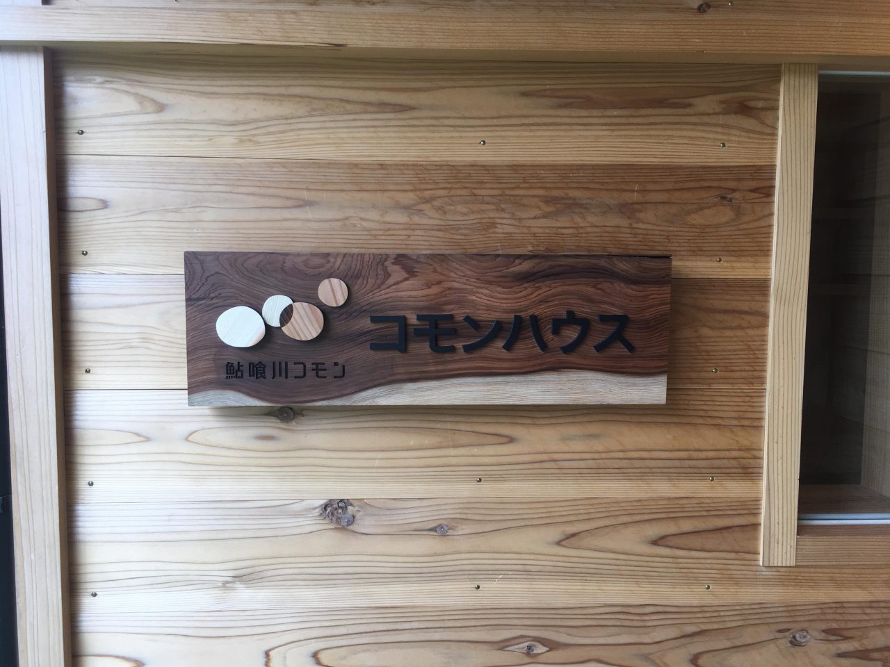 製材して出てきた木材の中から一番しっくりくるものをデザインチームと一緒に選び、あとはKMSで細かい部分の製作。今回はオスモの黒塗料を使い、コモンハウスの文字がしっかり見えるようコントラストをつけました。ロゴの部分は木の木目を生かして、抑揚のあるイメージに。