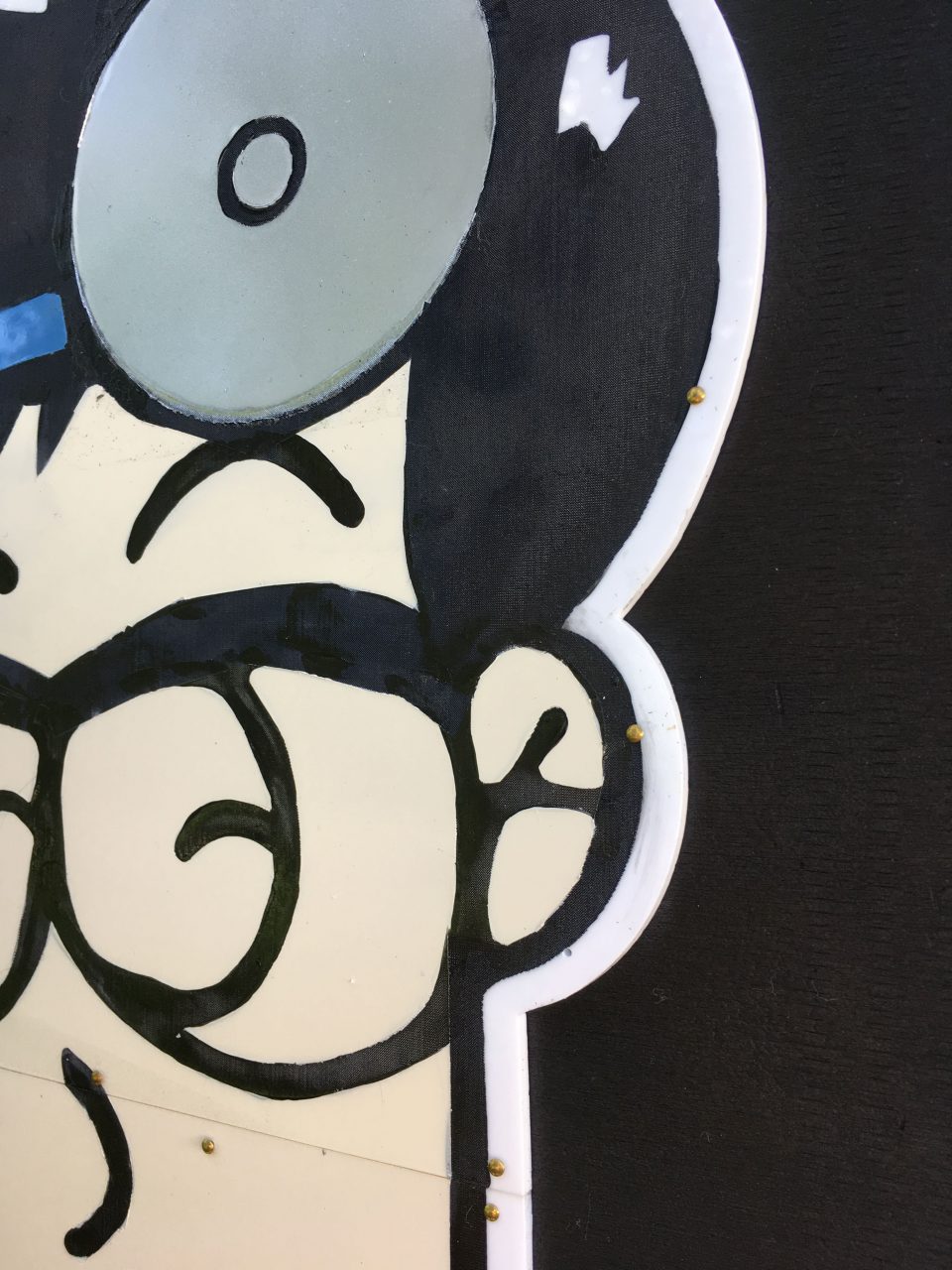 秋山ドクターのお顔は、いただいたデータを超拡大し、パーツに分けてアクリルで加工。