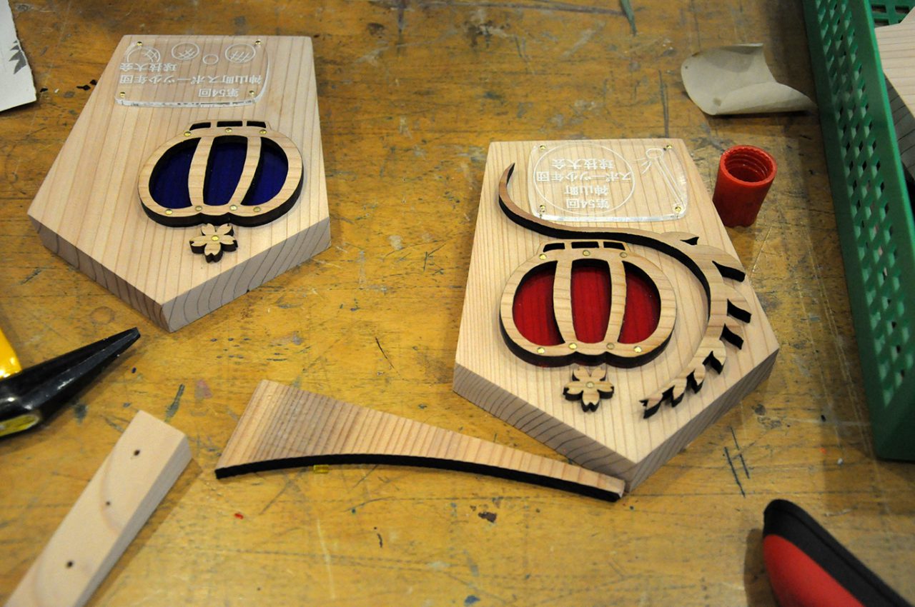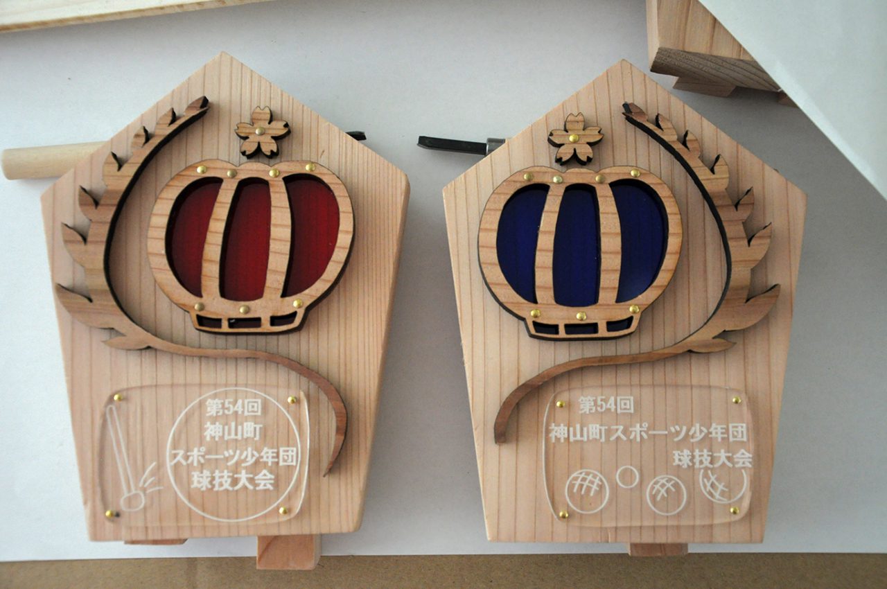 去年の今頃、神山町の教育委員会の方にお願いされて、初めて制作した神山町杉を使ったトロフィー。去年の森林女子1年生の二人は、初めてのデザイン、慣れないレーザーカッター、制作過程でこうすればよかったなぁ。等と、ちょこっと失敗した部分もあったのですが、今年は自らずんずん進んで制作に取り組め、デザインもパワーアップ。仕事もとても丁寧で自信作が完成しました!