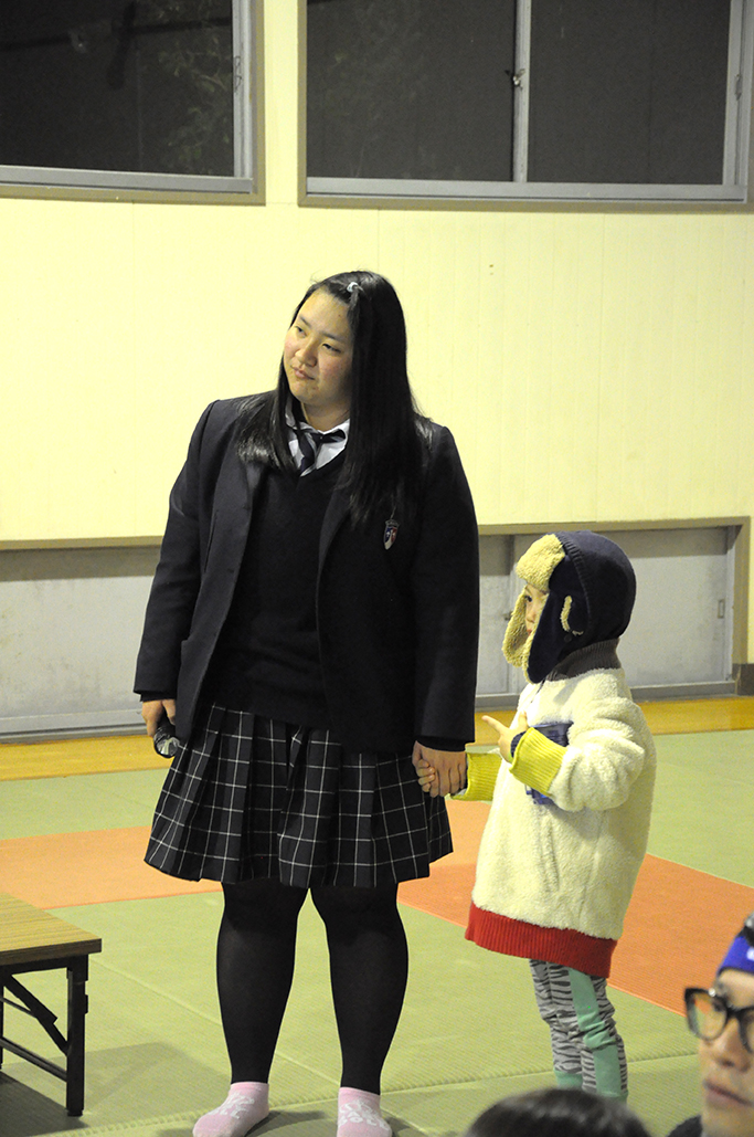 まだ外は明るい午後4時、親子連れや子供達が集まりってきました。おもいやりライト事務局から反射材や早めの点灯についてアニメーションを使って紹介していただき、キラチュウ集めのルール説明も。キラチュウは子供と高校生でチームを組み、集めたキラチュウのサイズや種類のよってチームのポイントを競うもの。