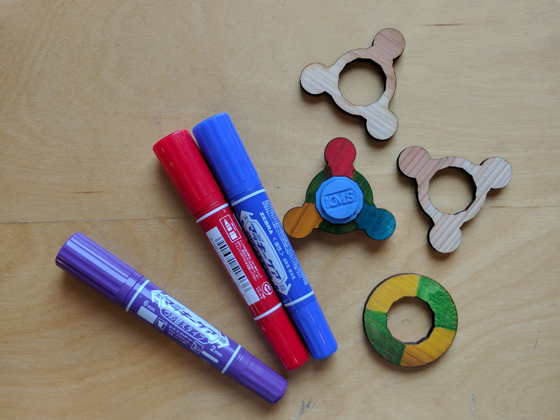 さらにサインペンで色を塗って、自分だけのハンドスピナーをデザイン!